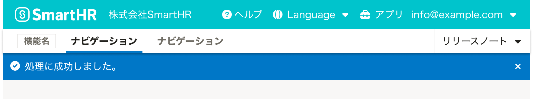 操作後に画面全体の切り替えが発生する場合など、ユーザーが直前に操作していたButtonの近くに表示することが難しい場合は、成功時にはsuccess状態、失敗時にはerror状態でNotificationBar[bold]を表示します。
