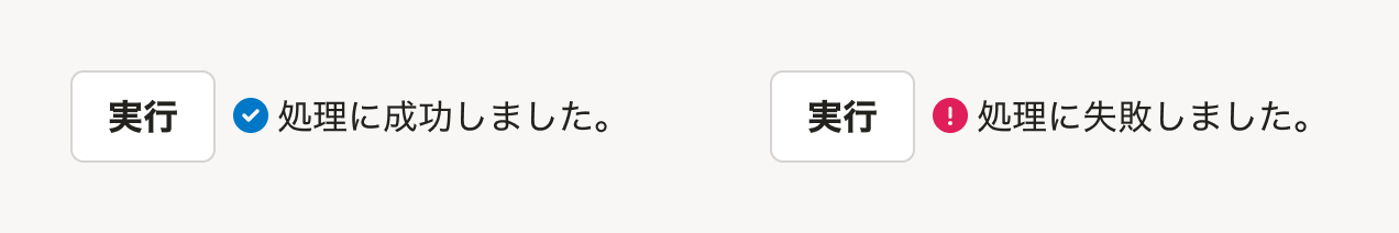 ユーザーが直前に操作していたButtonなどの近くに、成功時にはsuccess状態、失敗時にはerror状態でResponseMessageを表示します。再度処理を実行するタイミングでメッセージの表示を止めます。