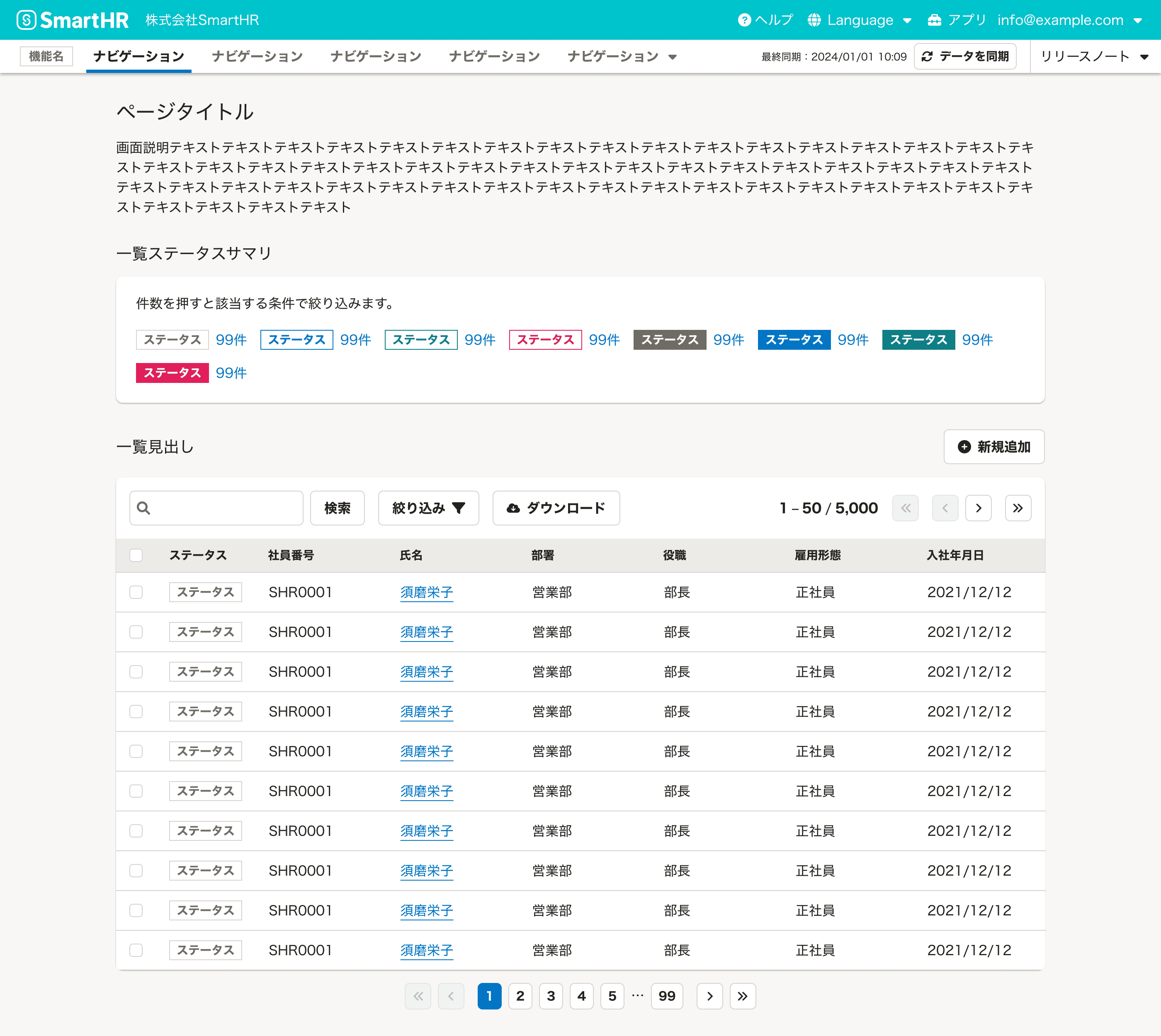 SmartHR全体で一貫性のあるページレイアウトを提供することで、ユーザーはレイアウトを都度学習することなく経験に基づいてUIを予測しながらアプリケーションを利用できます。