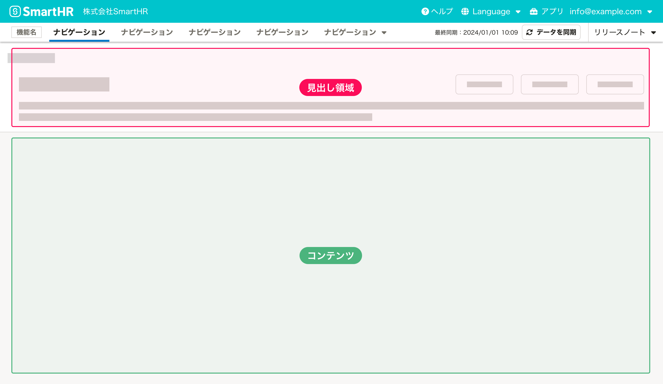 エラー画面を除き、SmartHRが提供する画面ではAppHeaderをビューポート最上部に配置します。