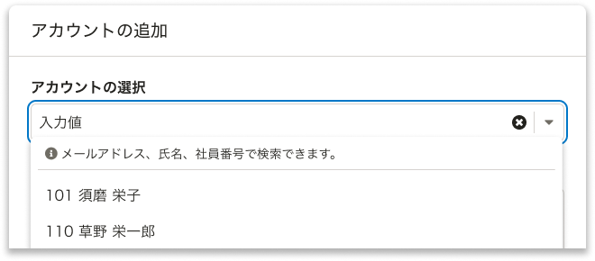 SmartHRのアカウントを選択します。単一選択の場合はSingleComboboxを使ってください。複数まとめて追加する場合はMultiComboboxを使ってください。